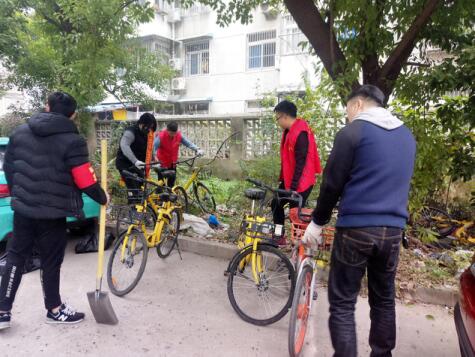 早上8点,所有加入活动的青年自愿者准时在公司大门前荟萃, 前往裕溪路社居委,在社区事情职员的配合下整理公司生涯区绿化带中的种种垃圾以及隐藏在绿化带中的破旧共享单车。
