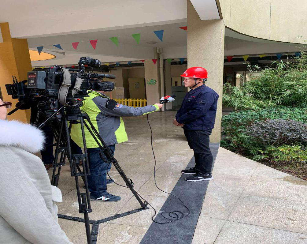 2019年1月19日下昼,合肥市包河区万年埠街道社区在万慈小学组织开展2019年新春联欢会,项目部作为驻地下层建设者也来到节目现场,项目清静员杨猛同志作为代表接受了安徽卫视的采访。