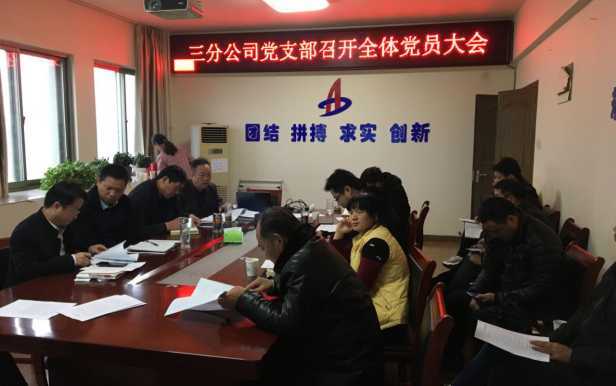 12月1日下昼,三分公司党支部在五楼聚会室召开党员大会,分公司全体党员、起劲分子加入聚会,聚会由党支部书记陈习武主持。