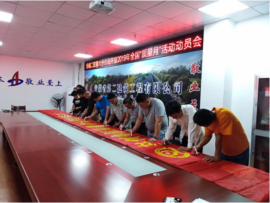 为认真落实绿色版888集团welcome活动集团股份有限公司关于开展2019年“质量月”活动的通知,9月3日,第六分公司召开2019年“质量月”活动专题会举行宣贯,组织职工举行横幅署名活动,以“共创中国质量 建设质量强国”为主题,鼎力大举营造“人人重视高质量,人人创立高质量,人人享受高质量”的优异气氛,进一步规范质量清静行为,提高质量清静管理水平,周全提升项目管理水平,要求项目部凭证“质量月”活动内容,团结项目现实,全心安排、周密安排,以“质量月”活动为契机,加大项目质量宣传力度,进一步提高全员质量意识,开展质量树模建设,建设公司质量品牌,牢靠树立一心一意为用户提供优质服务的绿色版888集团welcome活动一流企业征象 。