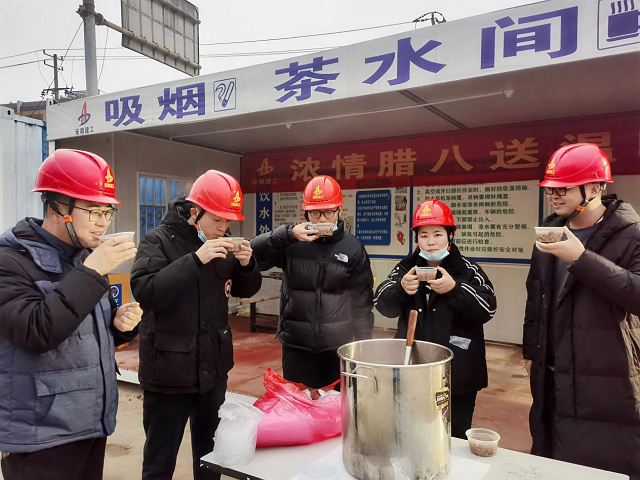 1月10日,安徽二建第三分公司铜陵水木清华园项目开展了“浓情腊八送温暖”活动,为一线工友送上了节日的祝福和营养富厚、热气腾腾的腊八粥,谢谢他们为工程建设的辛勤支付。