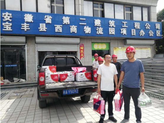 黄盱一行给项目员工送去慰问和眷注,准备了毛巾、风油精、十滴水、西瓜等防暑降温用品,嘱咐各人要合理安排事情时间,在做好事情的同时,增强自身防护。